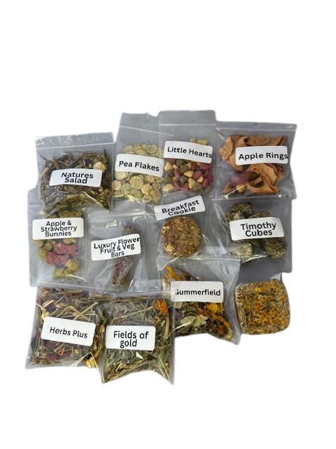 Note- Sample sizes will not come in original packaging, Items are treats and should be fed in moderation, please feed typical amount of treats to your small animals.