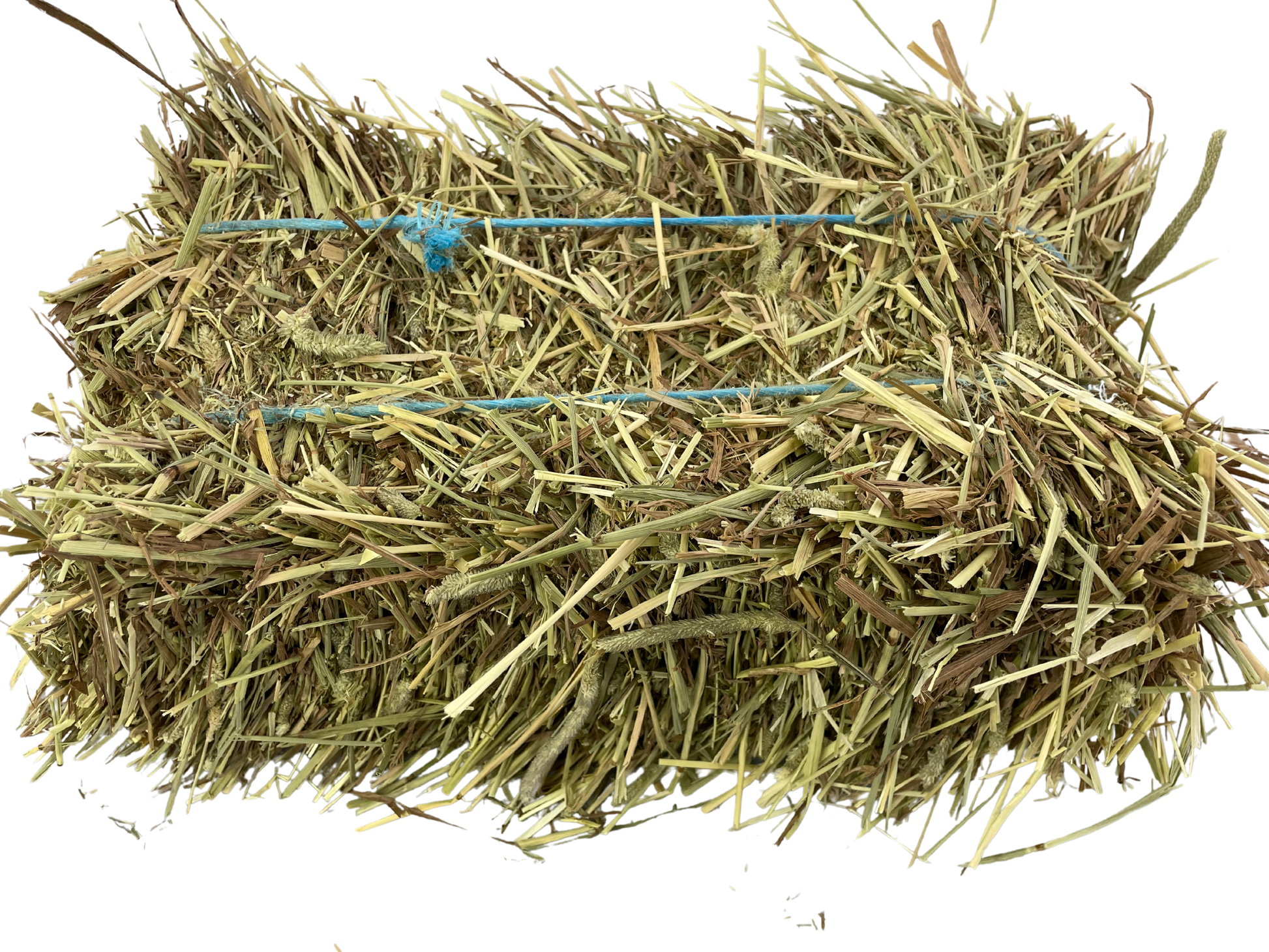 This bundle Includes 3 Mini Bales – each bale weighs between 0.75 and 1.15 KG and may include a variety of hay types and cuts. These mini bales may be half one kind of hay half another. Don't miss out on this great value!