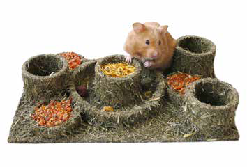 Created for fun and foraging this hay coated edible cardboard hide n treat maze is a series of rings, both pre-filled and ready for filling with your pets favourite treats or fruits and vegetables. Also included inside the package is a sample size Herb & Veg Drops so you can place a couple in the other tubes to challenge your pets each day.